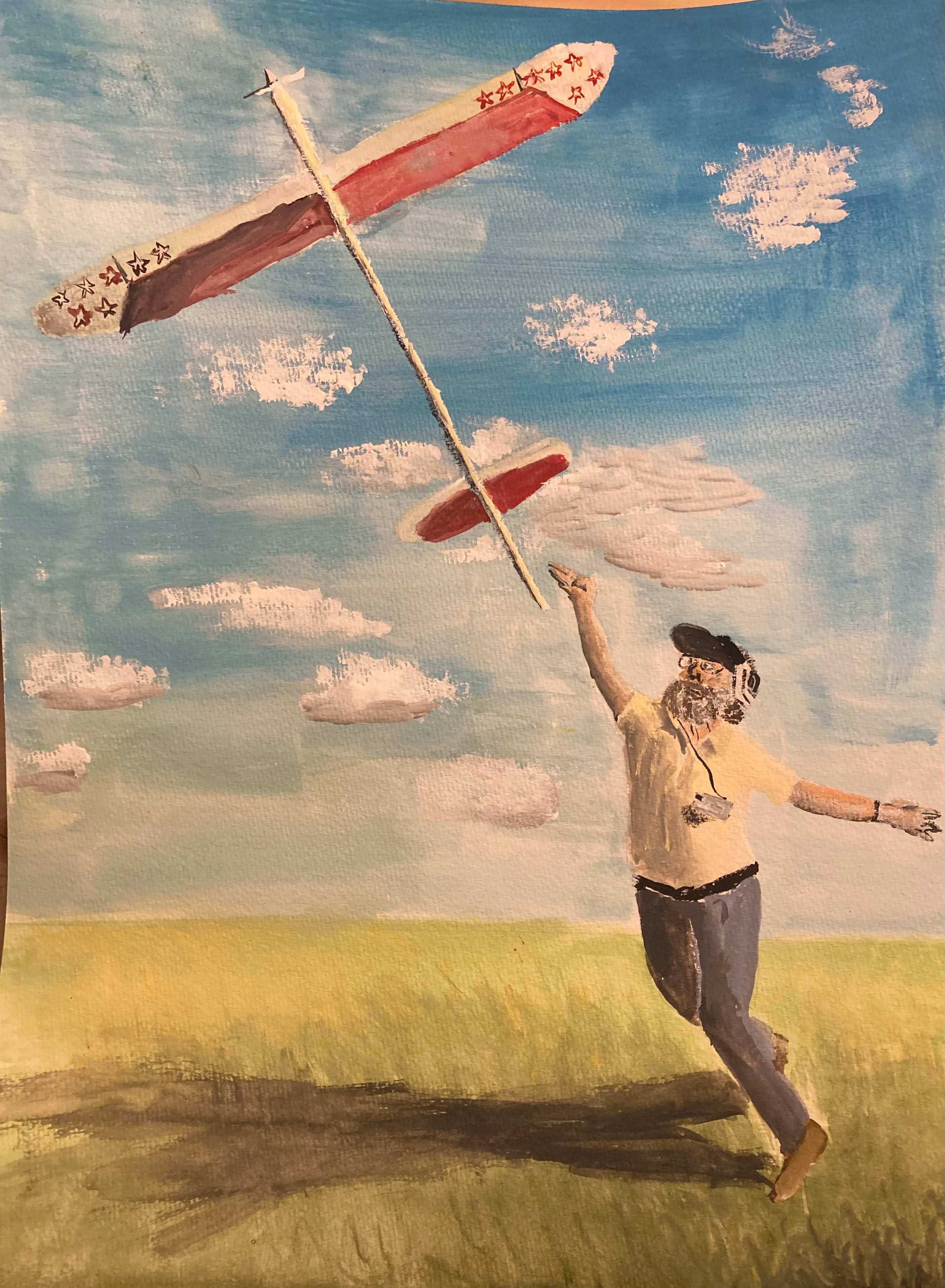 Man launching his RC aircraft somewhere in Massachusetts, from a photo in National Geographic Magazine, July 1986